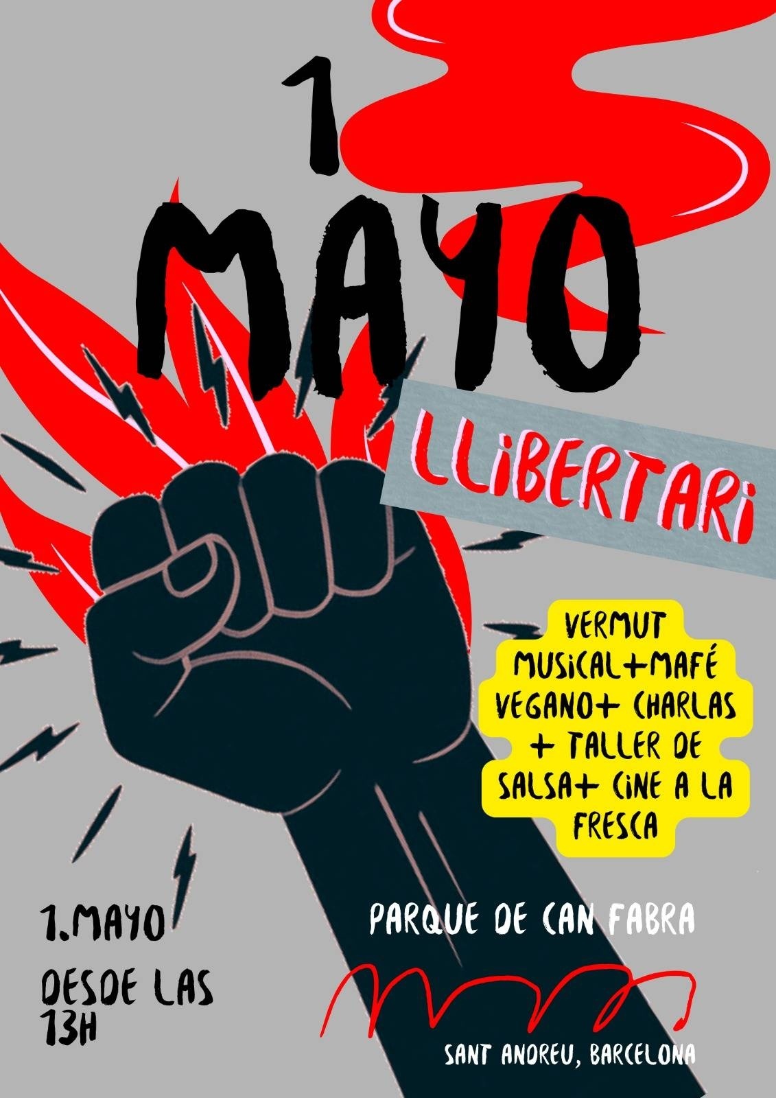 El proper 1 de maig serem als Jardinets de Can Fabra fent un dinar popular, xerrades i mรฉs activitats per enrecordar-nos que el capitalisme, el racisme i totes les seves estructures tenen els dies comptats!!!
