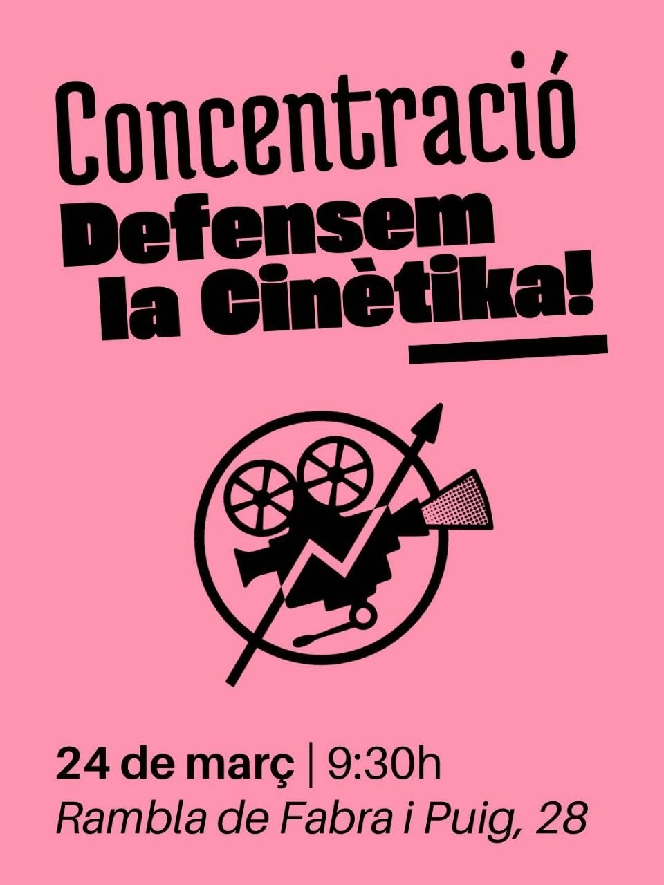 Per això us demanem una vegada més que vingueu a la concentració el dimarts 24 de març a les 9:30h a la Rambla Fabra i Puig, cantonada amb Carrer Monges, també que us involucreu en la campanya i que ens ajudeu a difondre el que està per venir. Perquè és per la Cinètika i per lis nostres companyis.