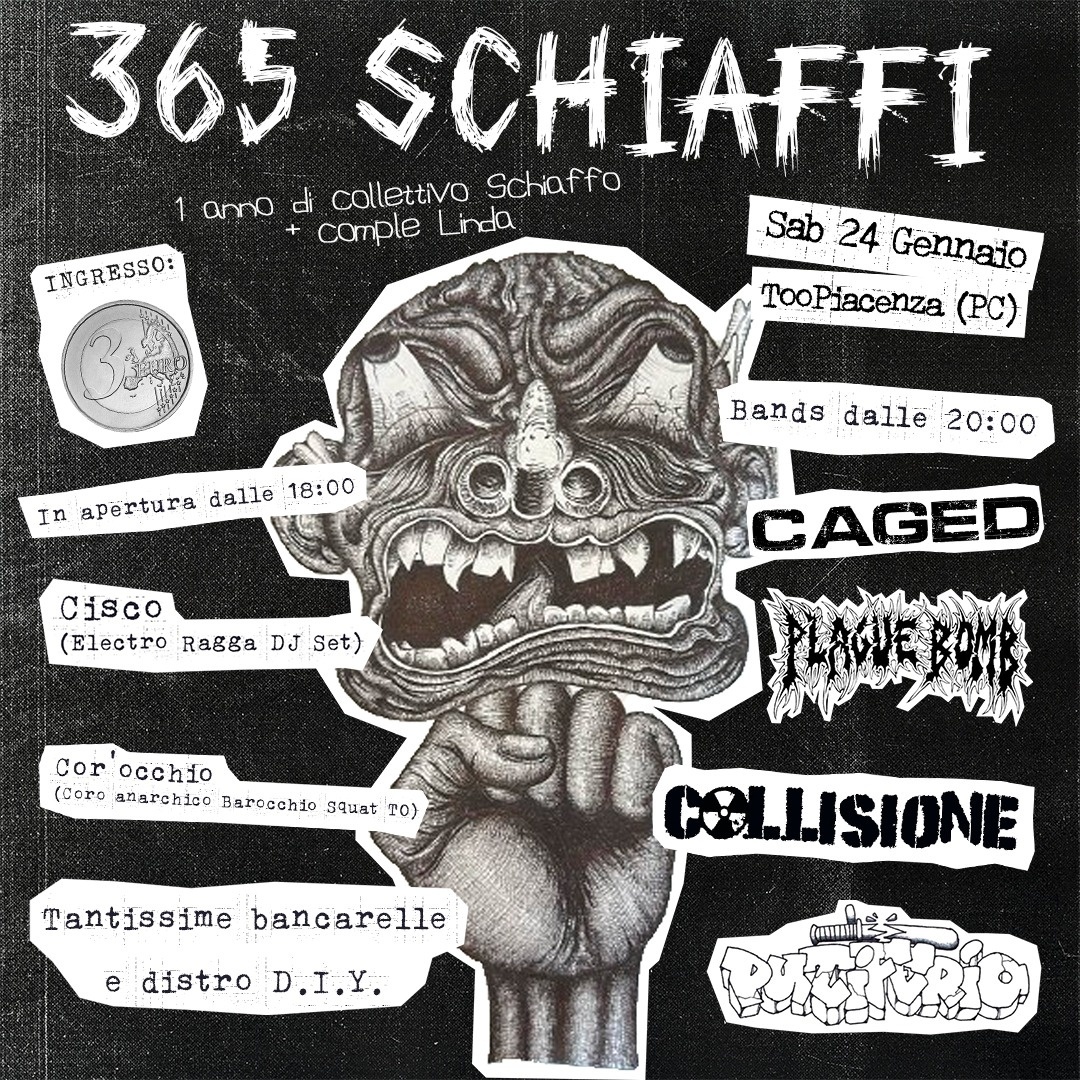 Sabato 24 gennaio al "Too Piacenza" festeggiamo un anno di collettivo Schiaffo: