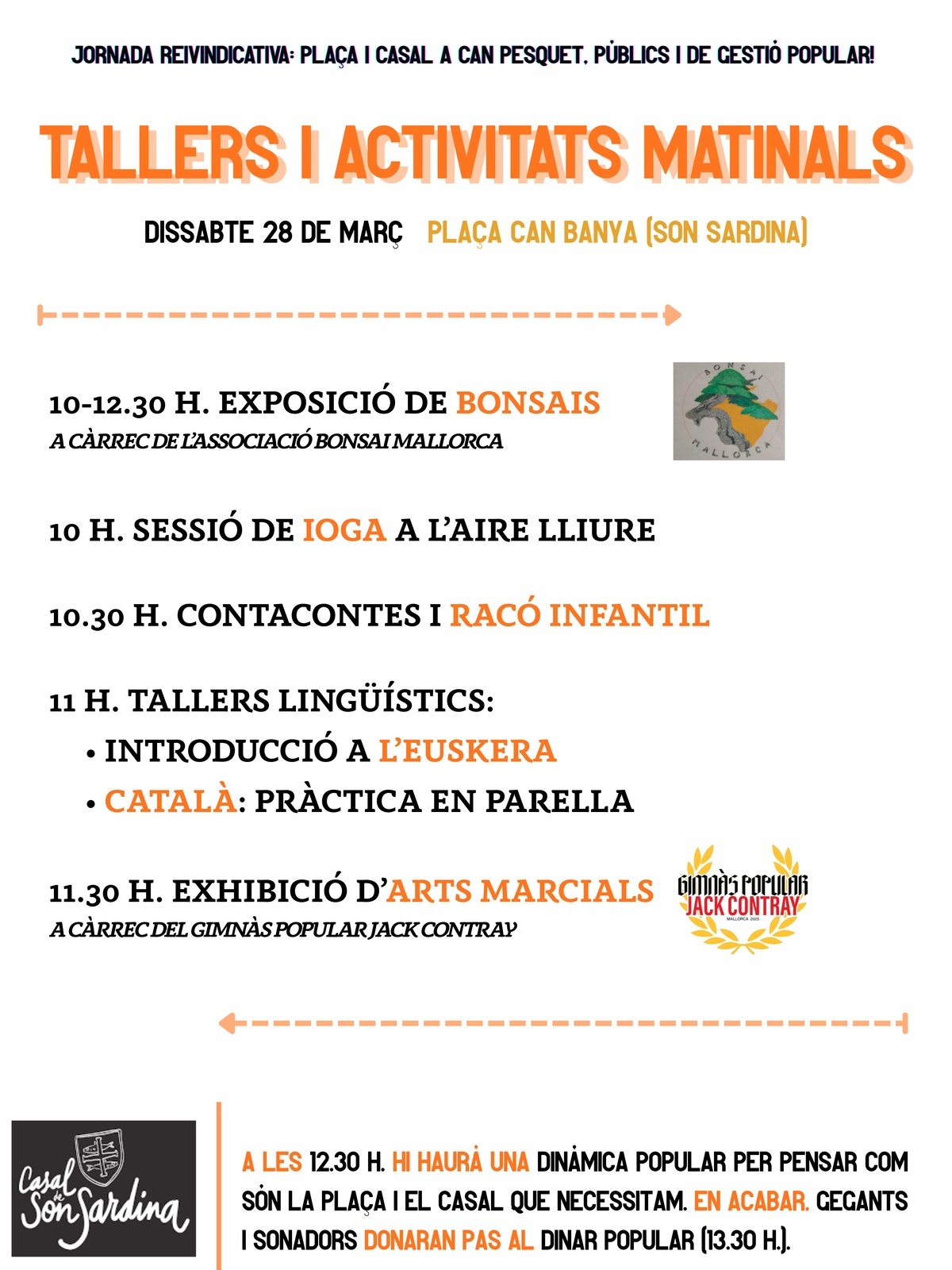 ACTIVITATS JORNADA REIVINDICATIVA PLAÇA I CASAL SON SARDINA
