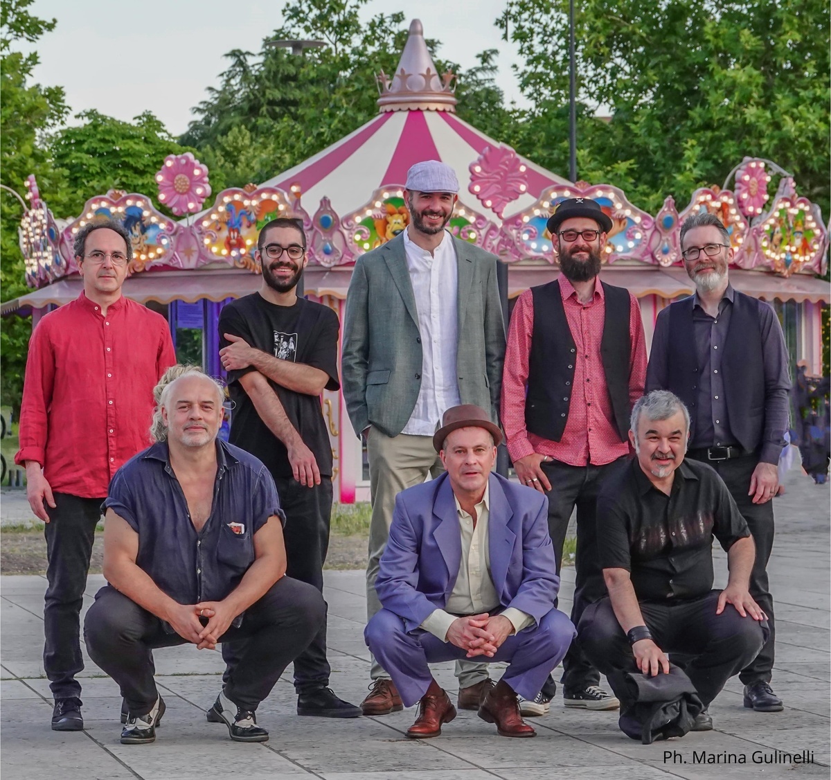 Gli Amarcord, band bolognese attiva fin dal 1991, nasce da un’idea di Igor Macchia, autore di testi, musica e arrangiamenti. La storica formazione bolognese si presenta come una big band di otto elementi, quasi una piccola orchestra che porta sul palco il ritmo della musica balcanica, con un occhio al dixieland e con l’influenza inconfondibile di suggestioni legate al mondo felliniano. I loro concerti sono caratterizzati da cambi repentini di atmosfera che passano da sonorità soffuse quasi da jazz club newyorchese a una musica chiassosa da festa balcanica, trascinando lo spettatore in un vortice sonoro in cui non si sa bene se ballare o