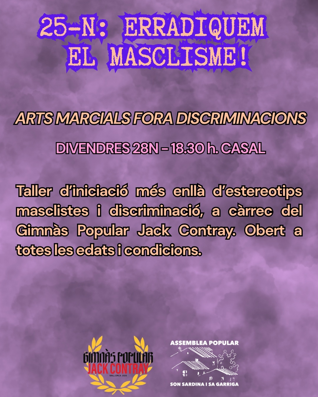 🟪 El segon acte d'aquesta setmana 25N contra la violènica masclista organitzat per l'Assemblea Popular tendrà lloc divendres, al Casal de Son Sardina.