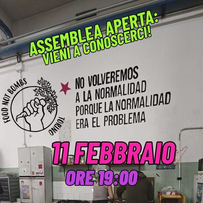 https://gancio.cisti.org/event/assemblea-aperta-food-not-bombsLargo Maurizio Vitale 113, Torino