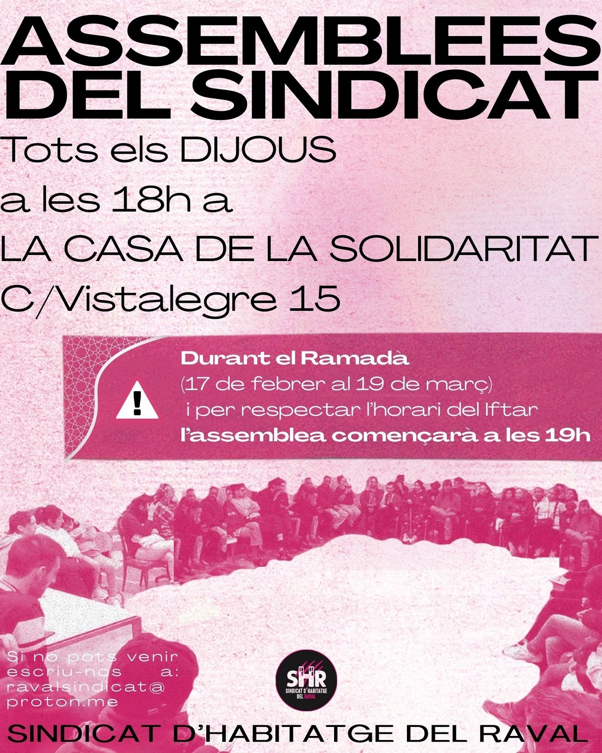 Si no pots venir escriu-nos a: ravalsindicat@proton.me