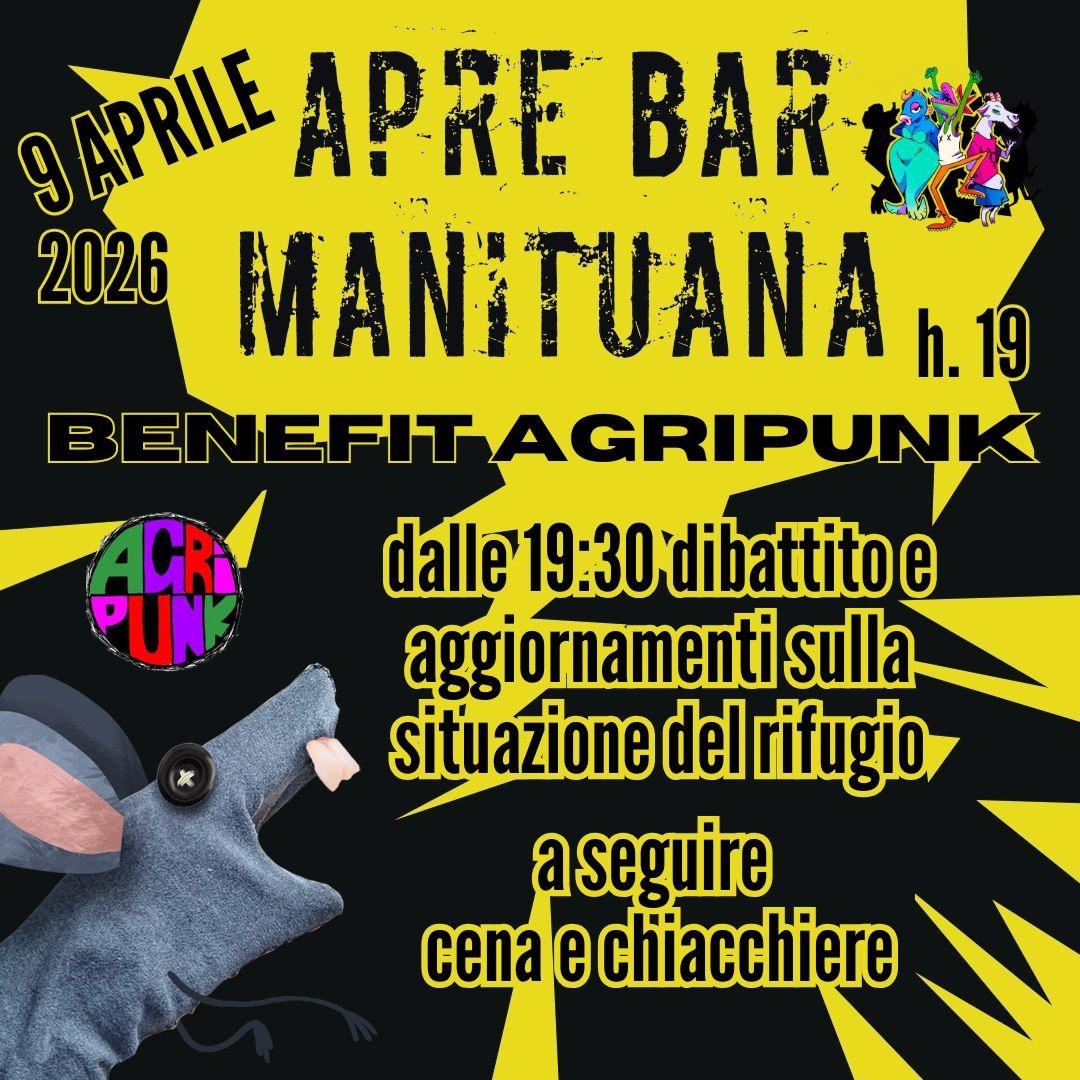 Giovedì 9 aprile, alle 19:00 Bar Manituana, tutte le collettive per un apertura bar benefit Agripunk.