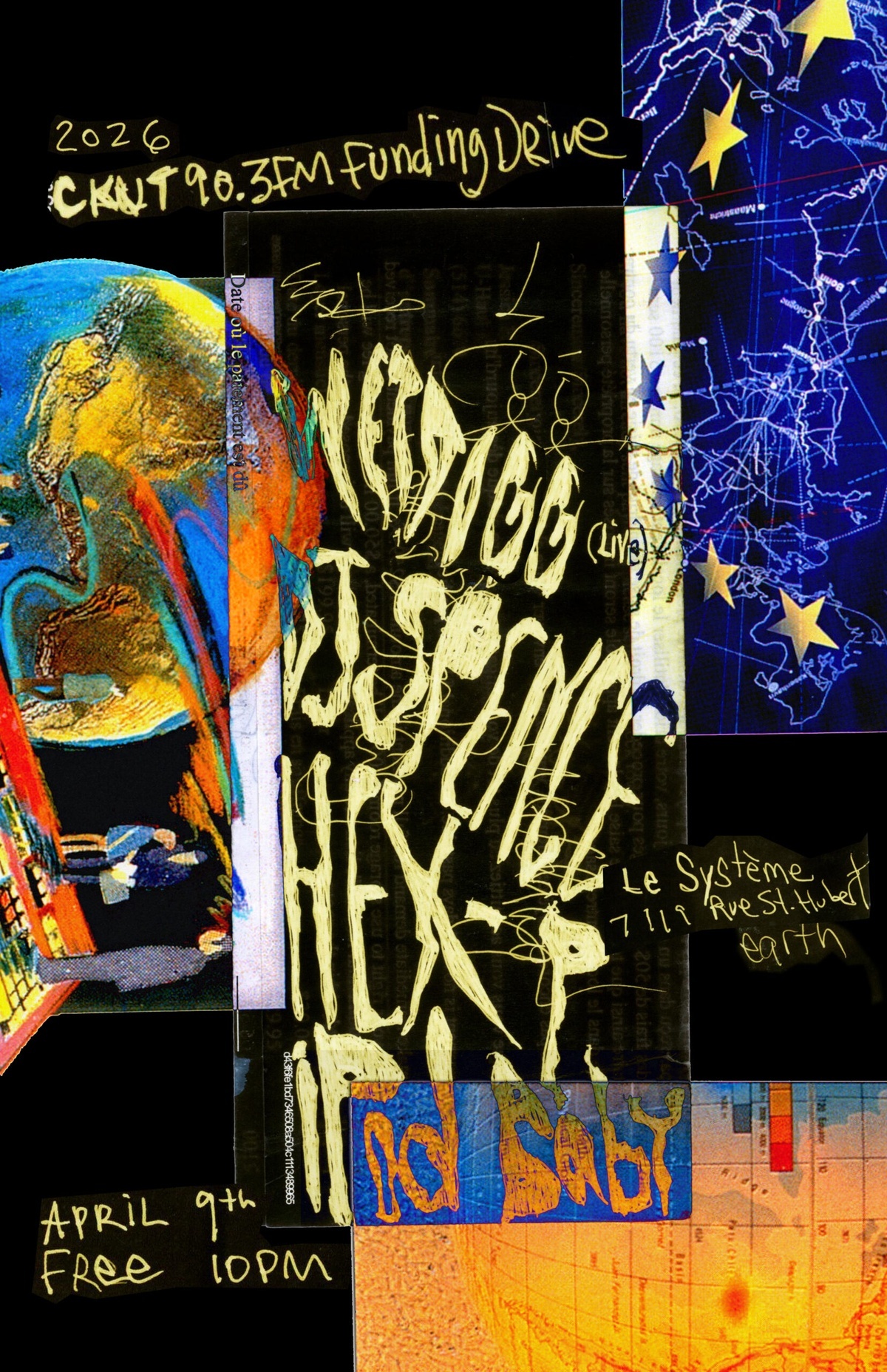 This year’s Funding Drive theme is INTERGALACTIC RADIO. We are back at Système Thursday April 9th to kick things off with a free party featuring CKUT crushers iPod Baby, Hex P, and DJ Spence in the booth + a live set from wetdogg in club mode.