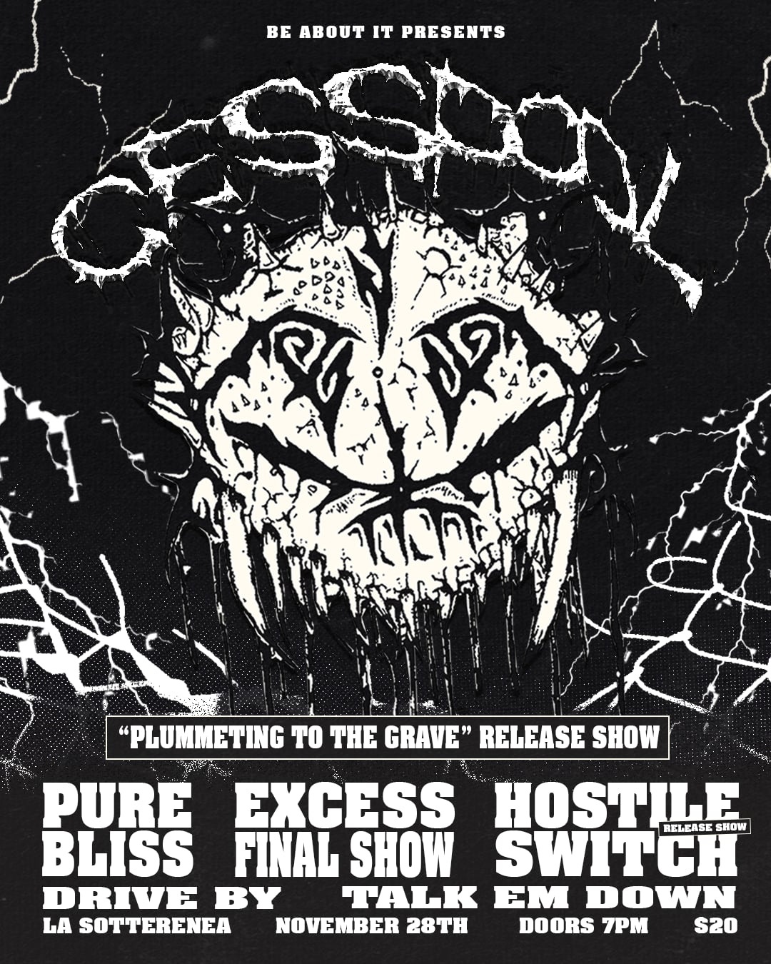 CESSPOOL (RELEASE SHOW) + PURE BLISS + EXCESS (FINAL SHOW) + HOSTILE SWITCH (RELEASE SHOW) + DRIVE BY + TALK EM DOWN