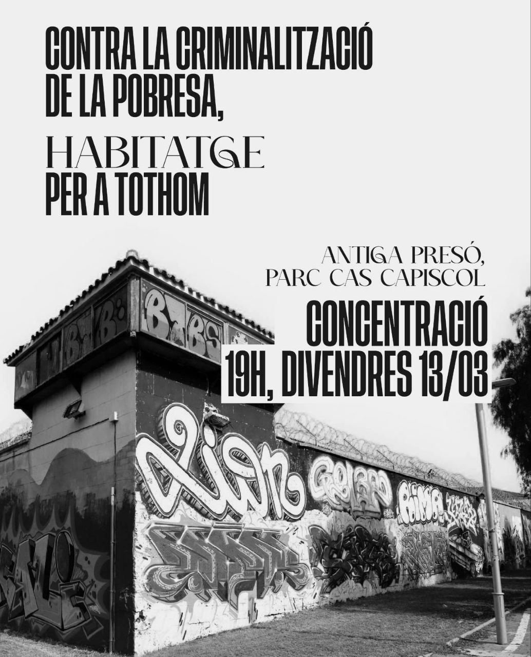 ⚠️ Diferents agents de l'illa ens oposam al desallotjament de l'Antiga Presó de Palma que pretén deixar més de 200 persones sense una alternativa residencial.