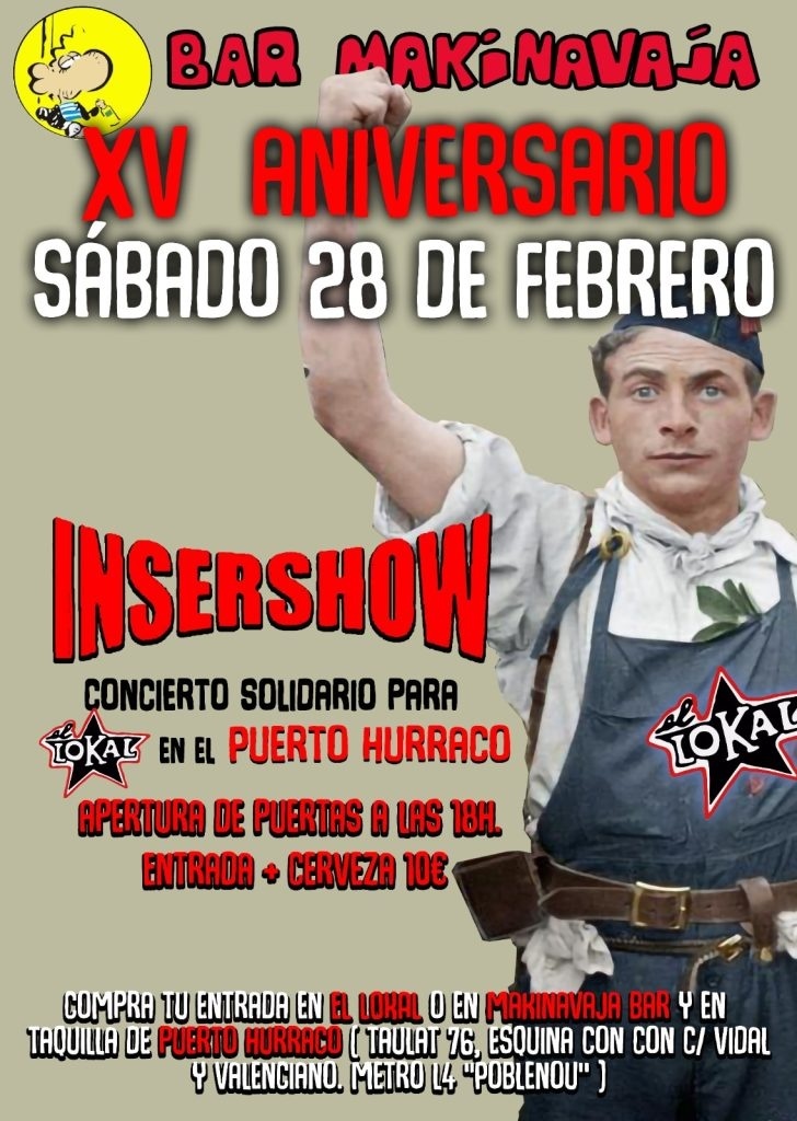 Comenzamos el año en el Makinavaja con un concierto solidario y antifascista celebrando nuestro XV aniversario en solidaridad con nuestro querido LOKAL animaros abra muchas sorpresas