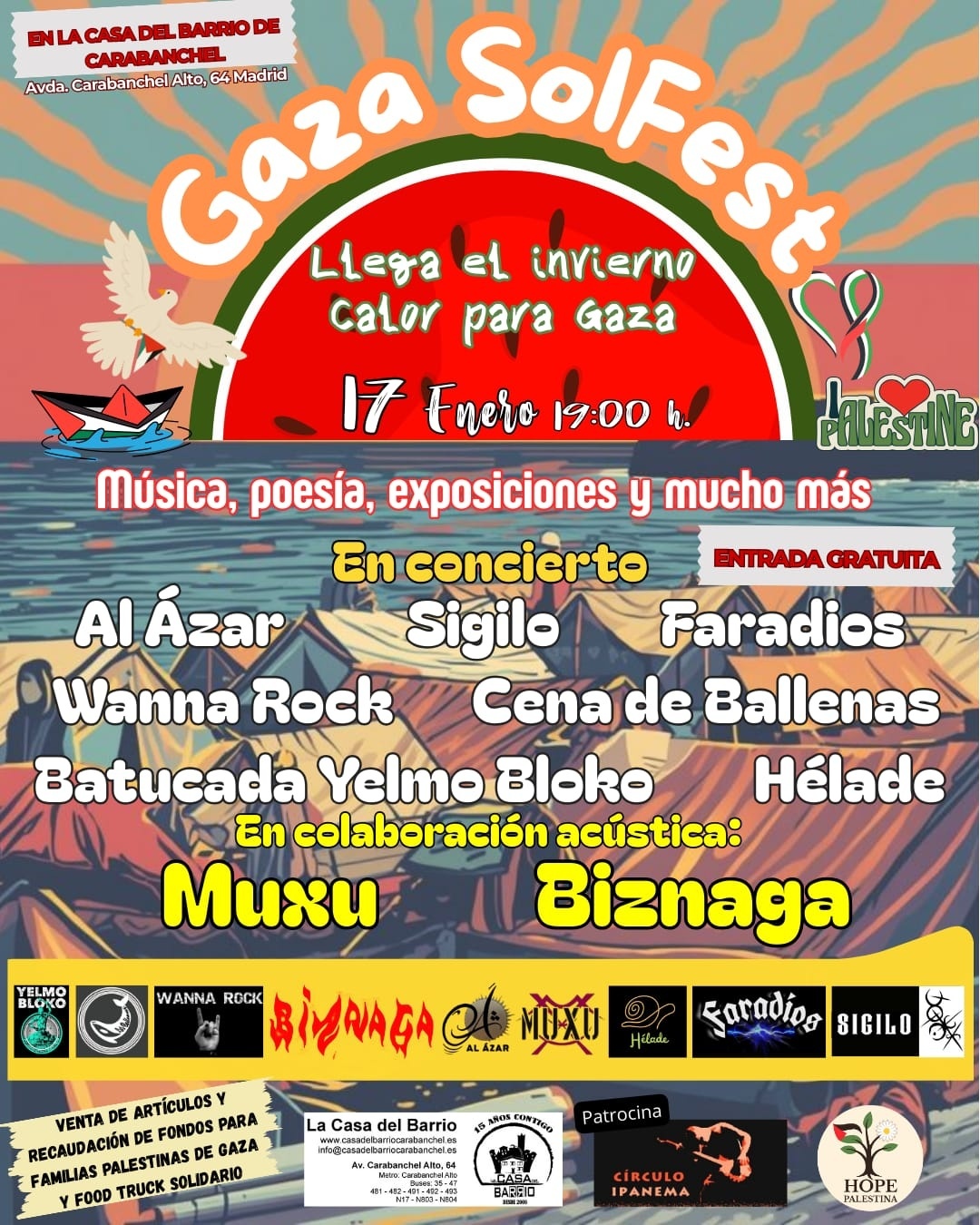 Este 17 de enero, Wanna Rock, junto a otros grupos, vamos a tocar en un evento para recaudar fondos para las familias de Gaza que están pasando el invierno bajo la lluvia en precarias tiendas de campaña.