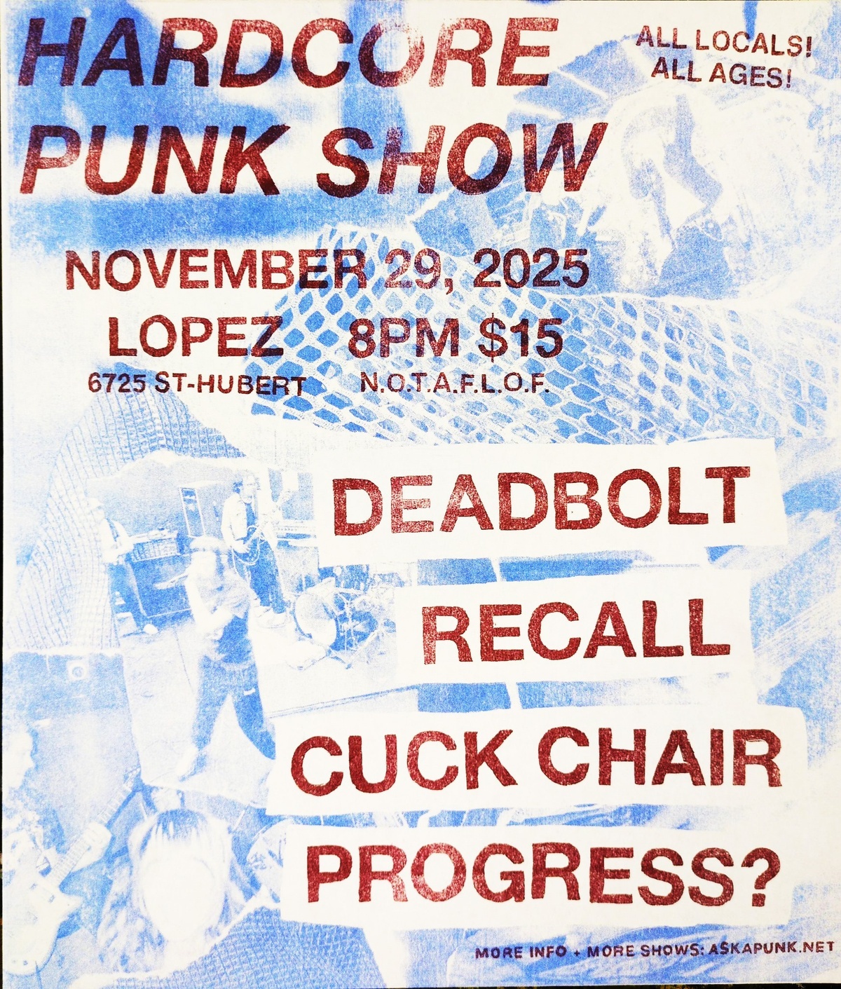 ALL AGES & ALL LOCALS hardcore punk show at LOPEZ – Saturday, November 29, 2025.
