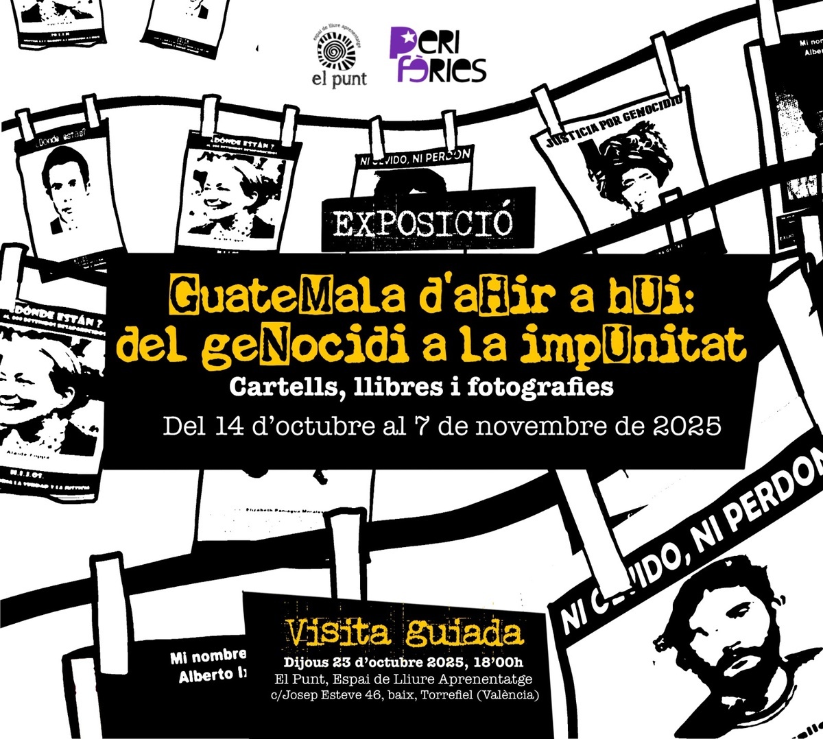 https://calendari.cc/event/exposicio-guatemala-dahir-a-hui-del-genocidi-a-limpunitat-cartells-llibres-i-fotografiesC/ de Josep Esteve 46, Torrefiel, 46019 València