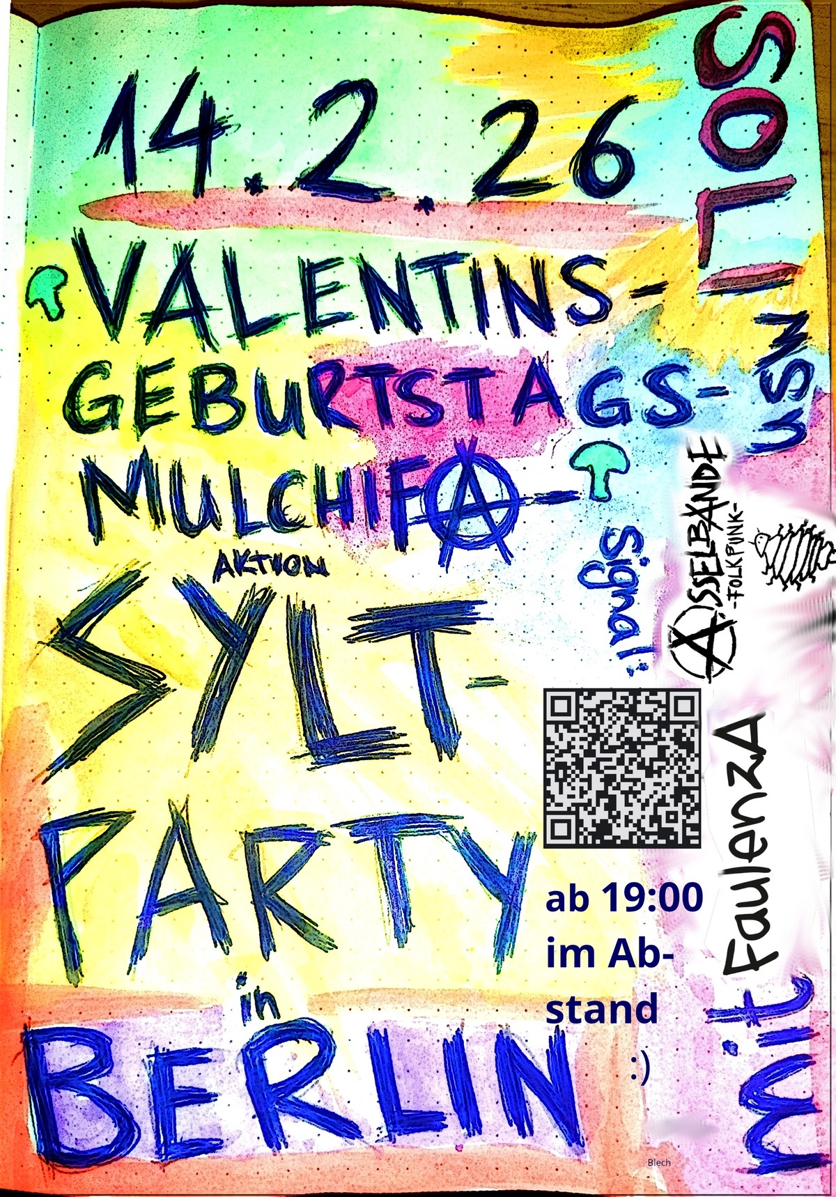 Wir sammeln ein Bisschen fürs alljährliche Punkercamp auf Sylt und dessen Agrarpunk-Ableger Mulchifa (Nazis mulchen!). Wir freuen uns auf ein Wiedersehen mit unseren Insel-Sommerfreundschaften und feiern einige Geburtstage nach und vor. Und wir lauschen dabei den Klängen der wunderbaren FaulenzA, Asselbande und allen, die spontan etwas am Open Mic beitragen wollen!