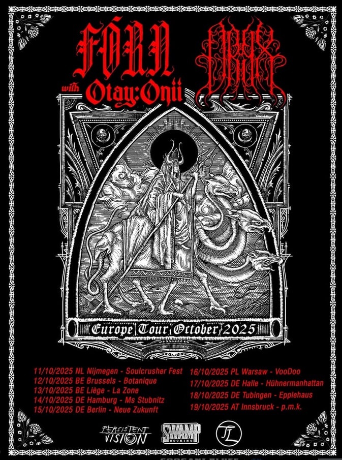 Returning to Europe for the first time since 2019, FÓRN will be joined by otay:onii for all dates in support of their 2024 LP “Repercussions of the Self”. ORYX will make their EU debut in support of their 2024 release, “Primordial Sky.” Tickets are on sale now.