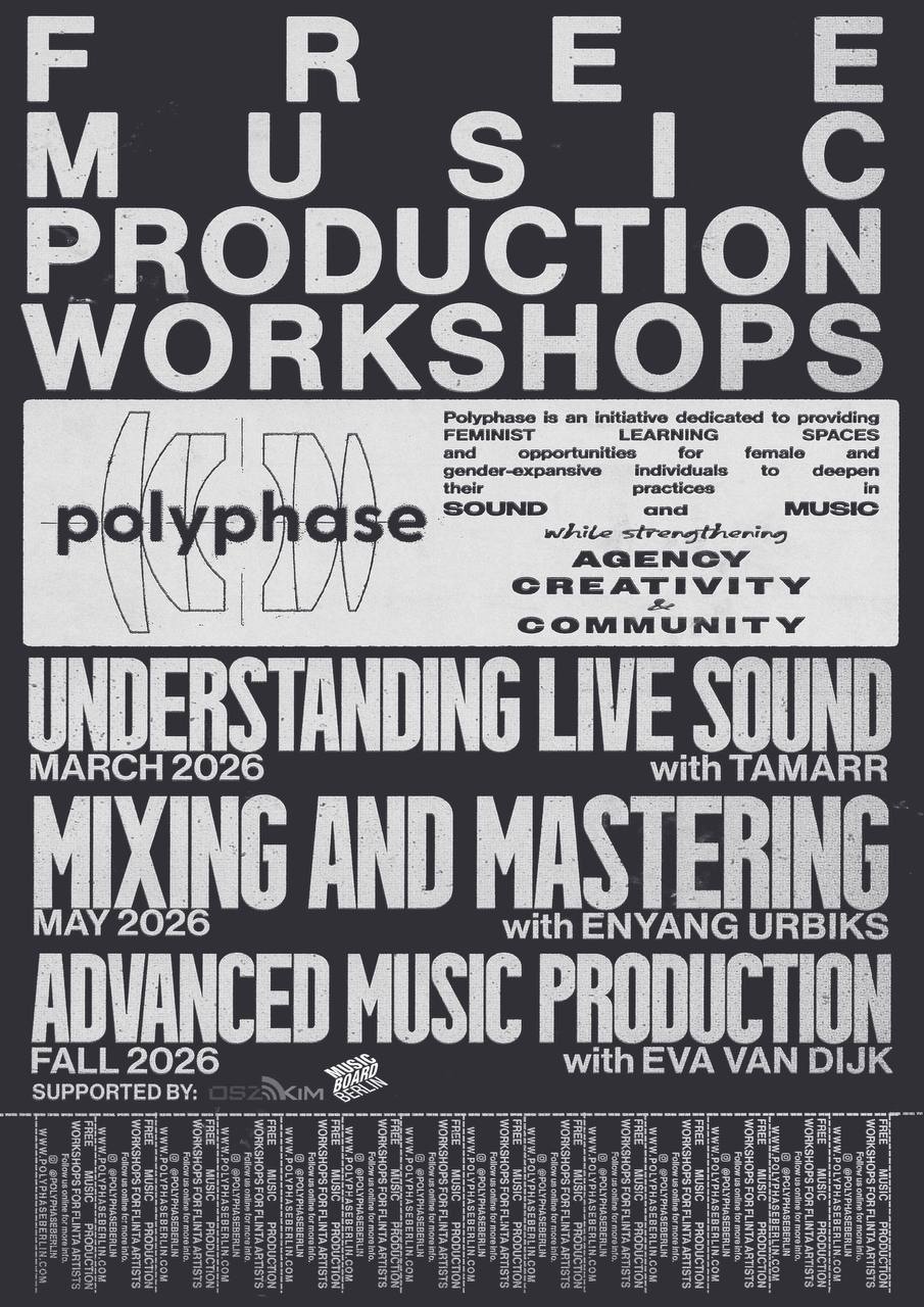 Polyphase is an initiative dedicated to providing opportunities for female and gender-expansive individuals to deepen their practices in sound and music while strengthening their agency and creativity. In 2026 we will be hosting 3 FREE courses thanks to funding through Musicboard GmbH.