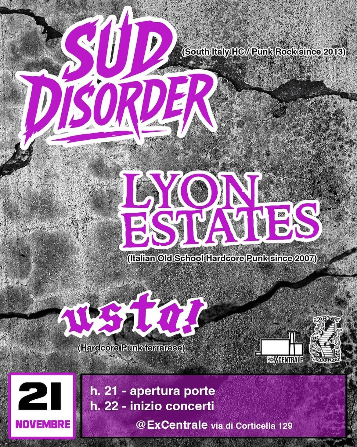 Sul palco ci saranno anche i Lyon Estates e gli Usta! per una serata all’insegna del punk hard core.