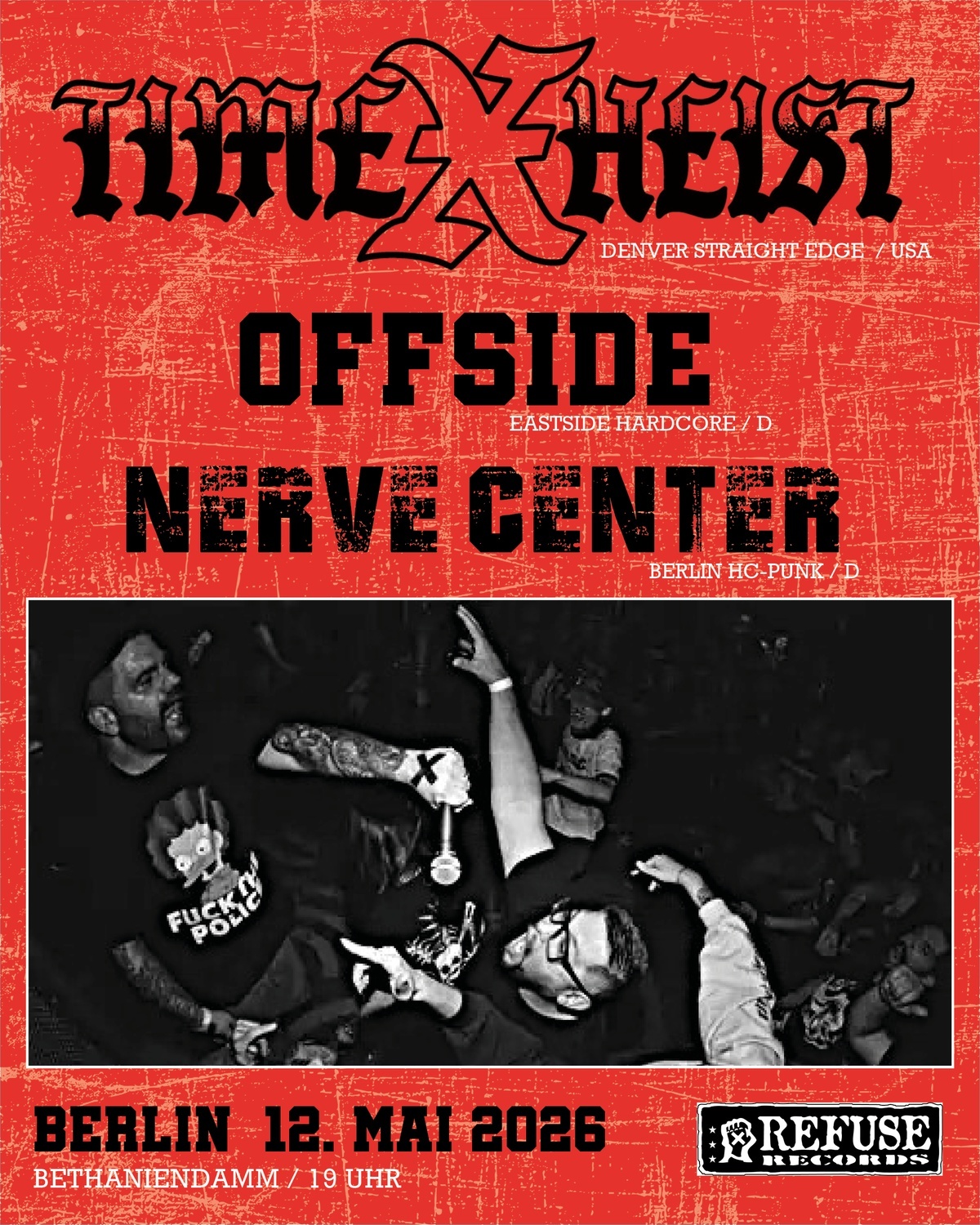 Hardcore-Punk: TIMExHEIST (USA), OFFSIDE (D), NERVE CENTER (INT)
