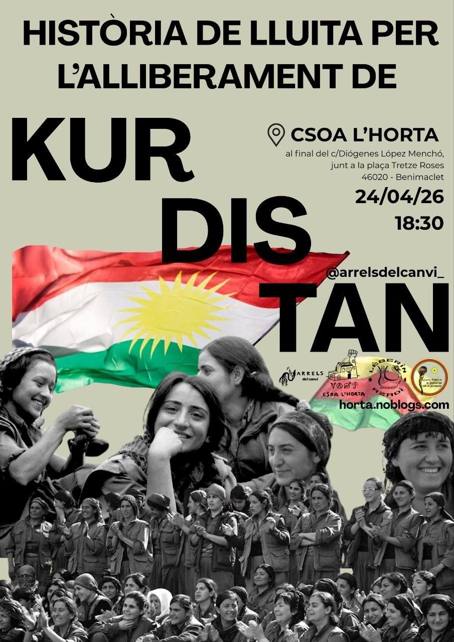 Vorem juntes el documental "Naharina" que mostra com és la vida quotidiana allà i xarrarem amb membres del @comitevalencia.kurdistan i @legerin_azadi_pv per entendre amb més profunditat la situació actual i els principis de la Revolució de Rojava.