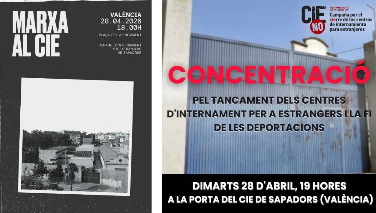 El proper dimarts 28/04, ens apropem a la concentraciò al CIE de Zapadors que convoquen tots els últims dimarts del mes les companyes de CIEs NO València.