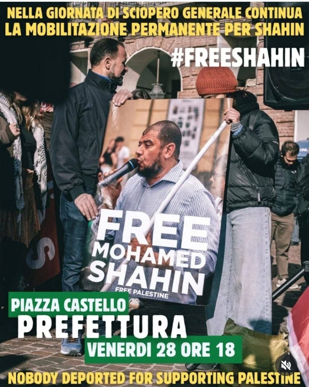 Dalle ore 18 sotto la prefettura continuiamo a chiedere la liberazione di Mohamed Shahin