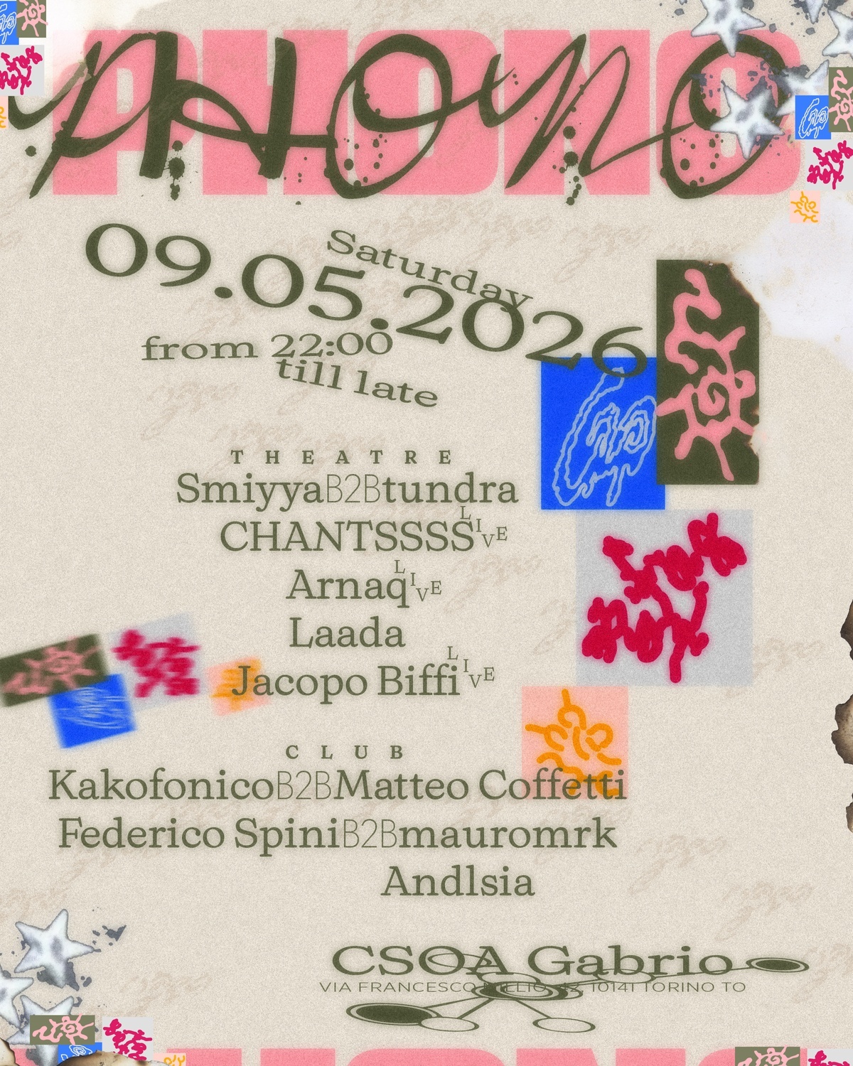 We are back with another PHONO chapter, sweetly landing in Turin at CSOA Gabrio from 22.00 to 04.00.