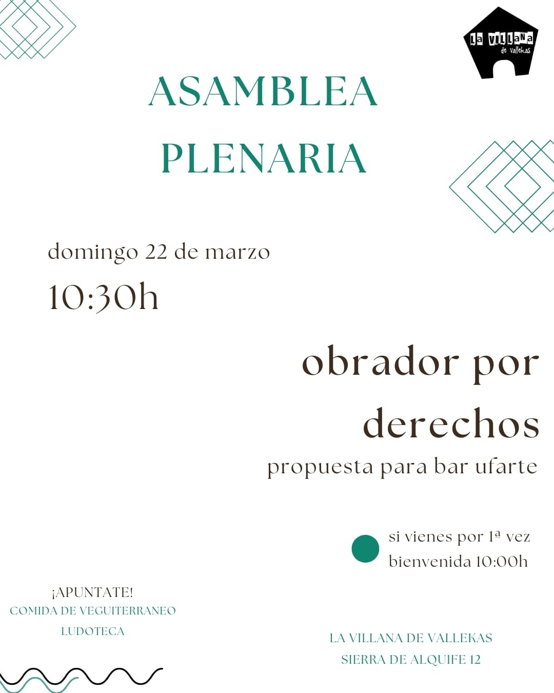 Escribe a info@lavillana.org si vas a venir y quieres quedarte a comer o necesitas ludoteca!