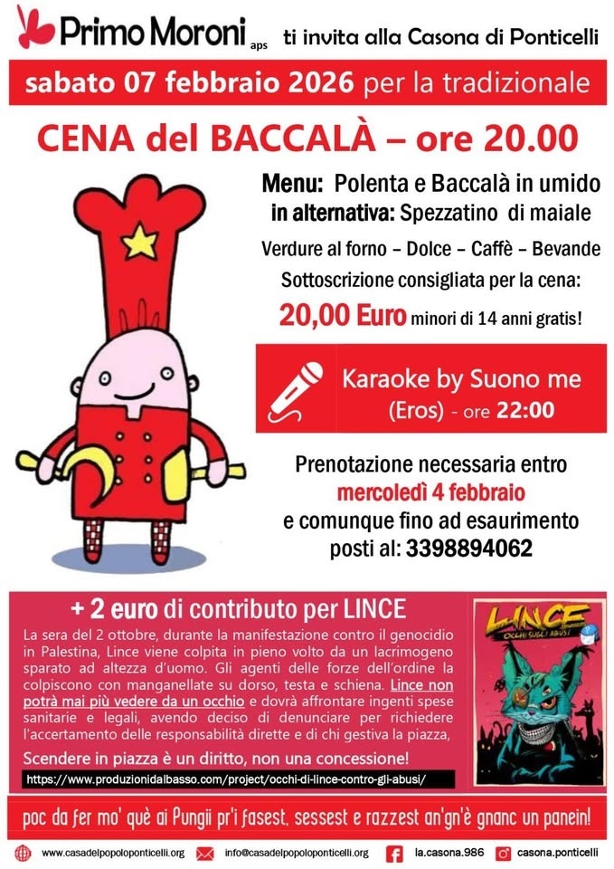 Prenotazione necessaria entro mercoledì 04 febbraio e comunque fino ad