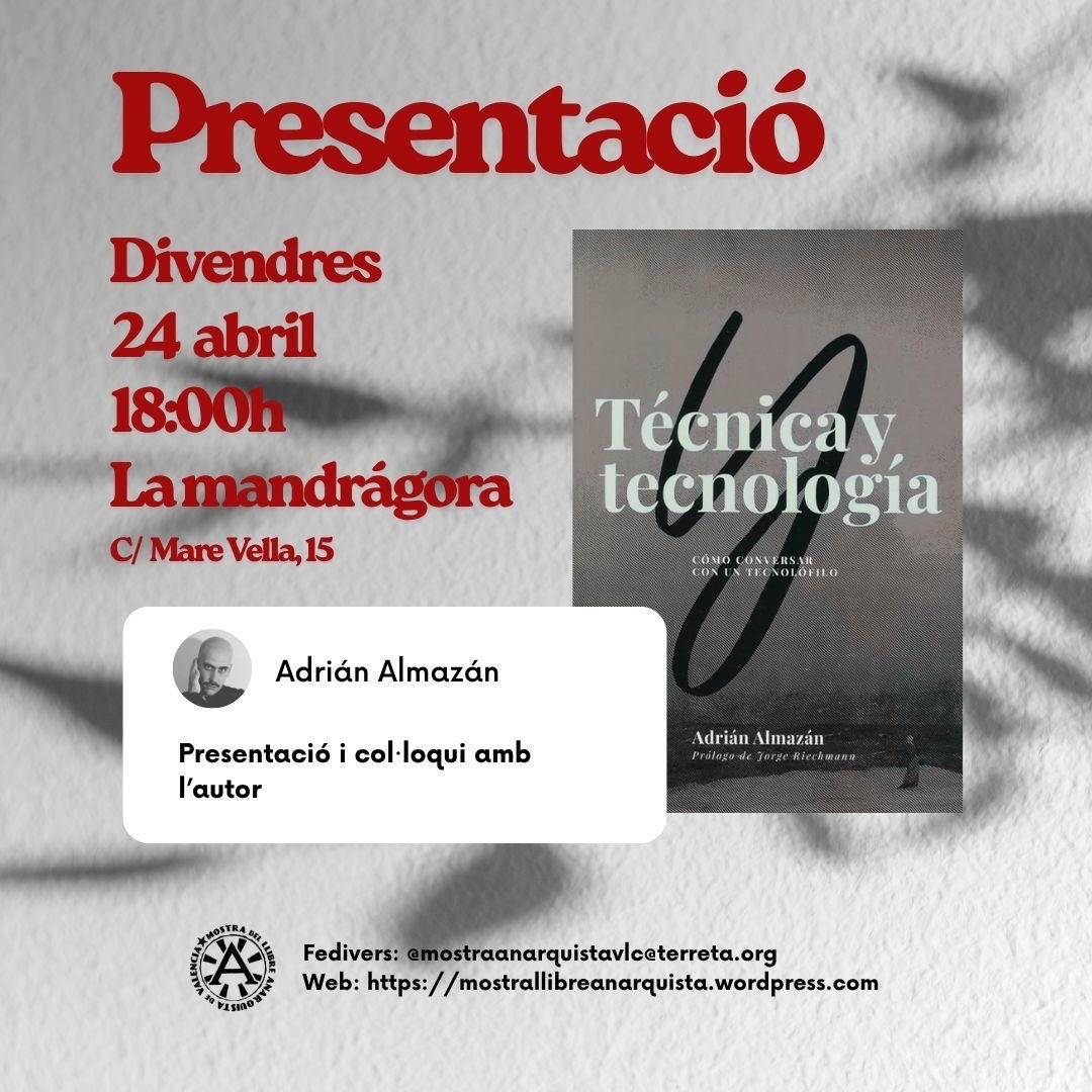 valènciavalenciaanarquismeciutat vellasobirania tecnològicaXXIV Mostra del Llibre AnarquistallibresTecnologiaLa Mandrágorapresentació llibre
