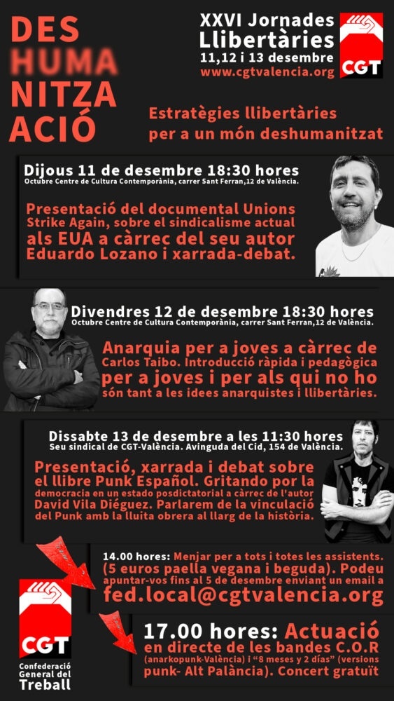 Dissabte 13 de desembre Seu sindical de CGT-València. Avinguda del Cid, 154 de València.