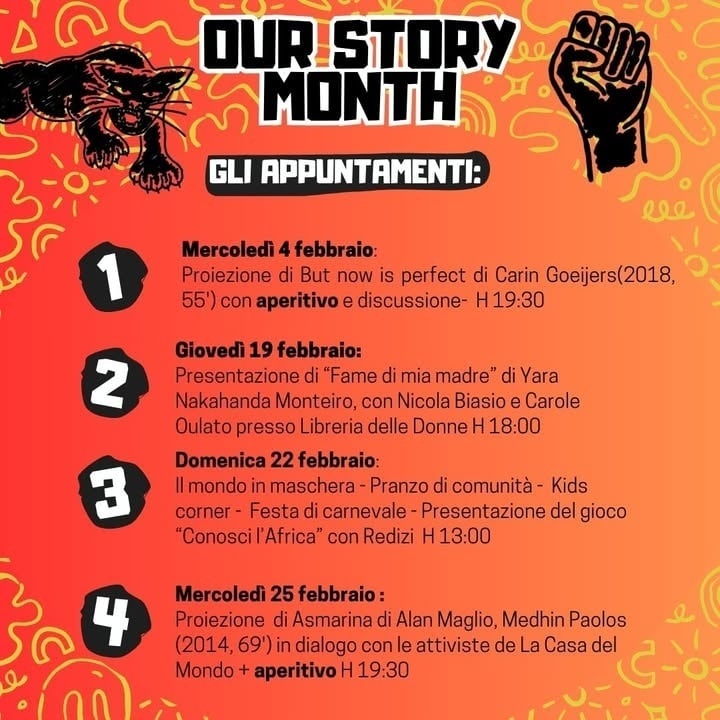 Anche quest’anno la Casa del Mondo Adjebadia torna a celebrare l’Our Story Month. Un mese di incontri, cinema e condivisione, per rivendicare narrazioni proprie e costruire memoria collettiva. ✊🏾✨