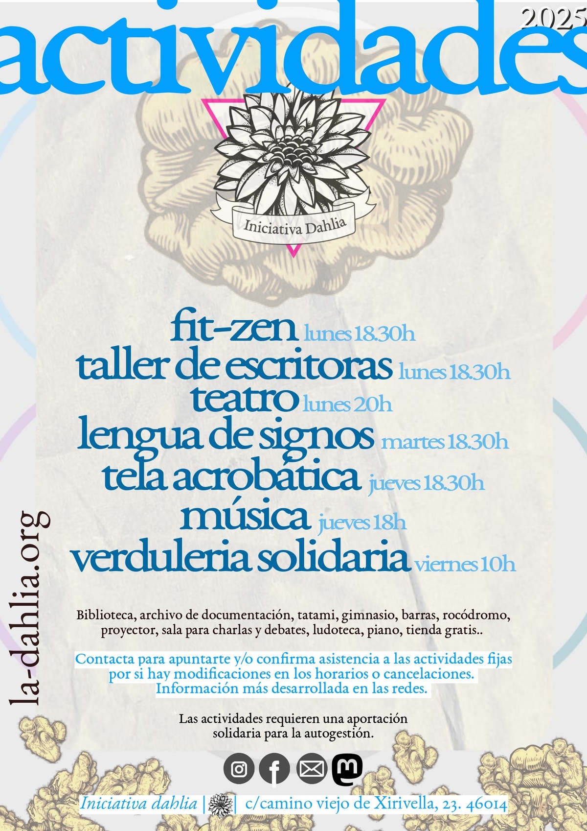Las actividades requieren una aportación solidaria para la autogestión.