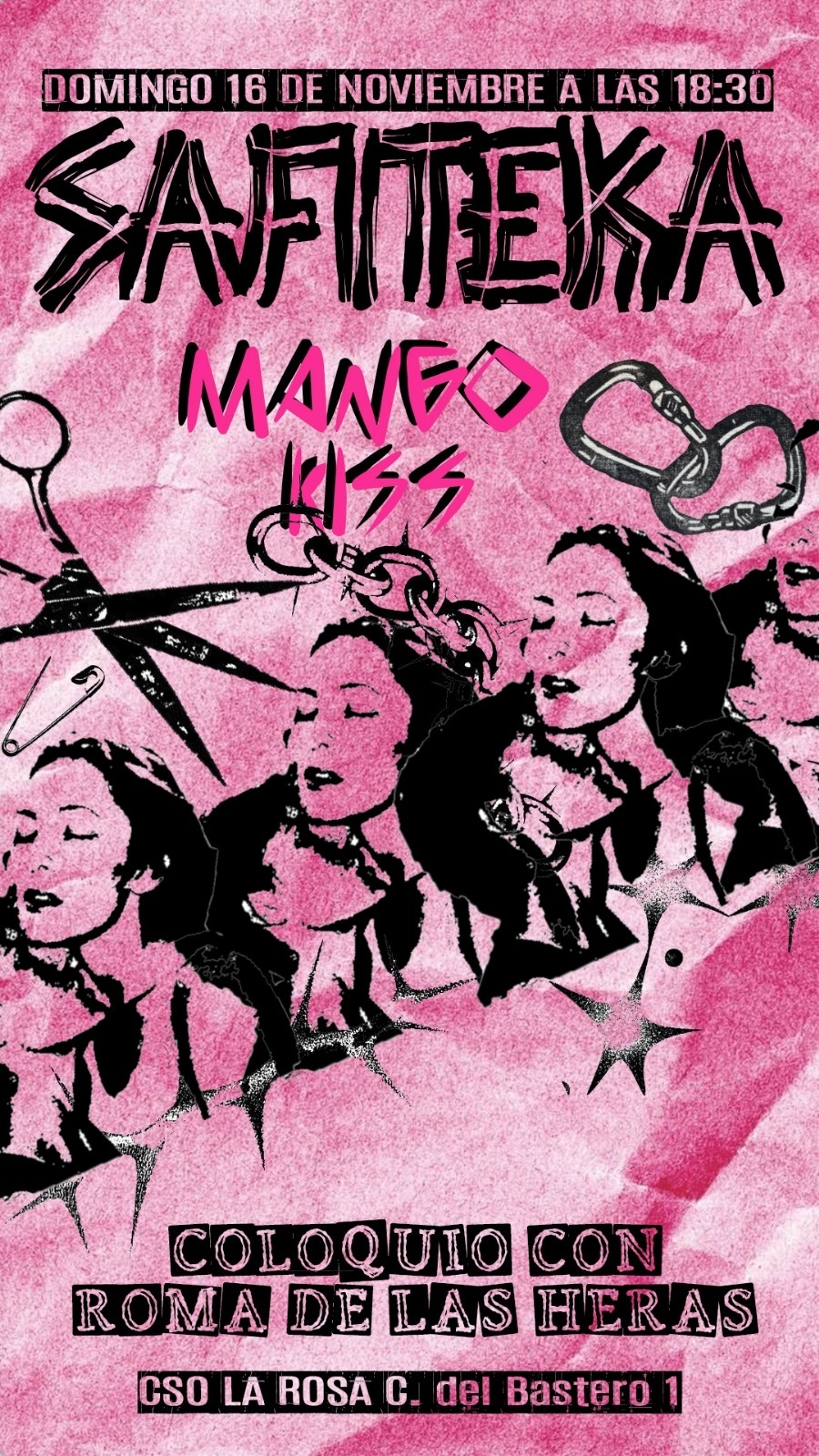 Domingo 16 a las 18.30h cinebollum sáfico en CSO La Rosa. Mango Kiss y coloquio con Roma de las Heras en la Safiteka.