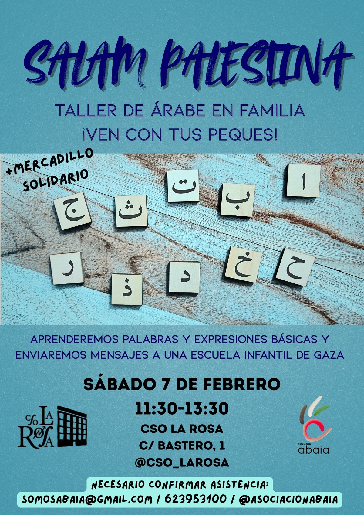 Taller de árabe en familia. ¡Ven con tus peques! Aprenderemos palabras y expresiones básicas y enviaremos mensajes a una escuela infantil de Gaza.