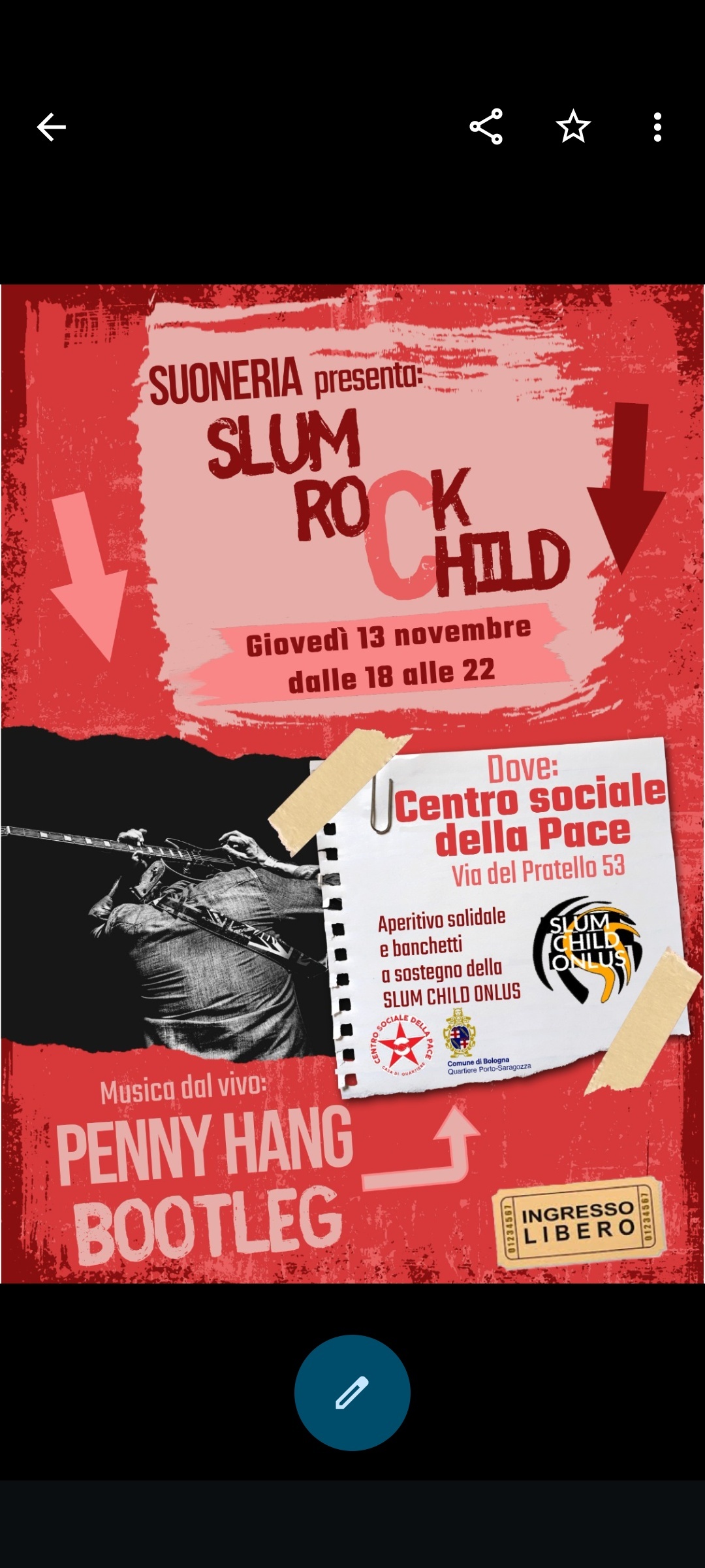 Musica rock , aperitivo e banchetti a sostegno della Slum Child Onlus