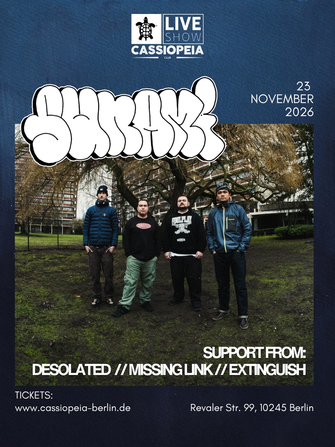 Sunami European Takeover 2026, featuring Sunami, Desolated, Missing Link, and Extinguish brings together some of the most punishing names in modern hardcore. Blending Bay Area beatdown intensity, UK metallic hardcore grit, and a new wave of crushing underground acts, this lineup delivers a relentless live experience built on heavy breakdowns, raw energy, and no-frills aggression. From chaotic pits to unfiltered stage presence, each band adds its own edge, making this tour a must-see for fans of the heavier side of hardcore.