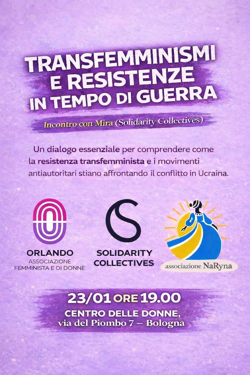 Un dialogo essenziale per comprendere come la resistenza transfemminista e i movimenti antiautoritari stiano affrontando il conflitto in Ucraina. Attraverso la voce di chi vive la solidarietà attiva sul campo, esploreremo le sfide del mutuo soccorso e della lotta per la libertà in contesti di guerra.