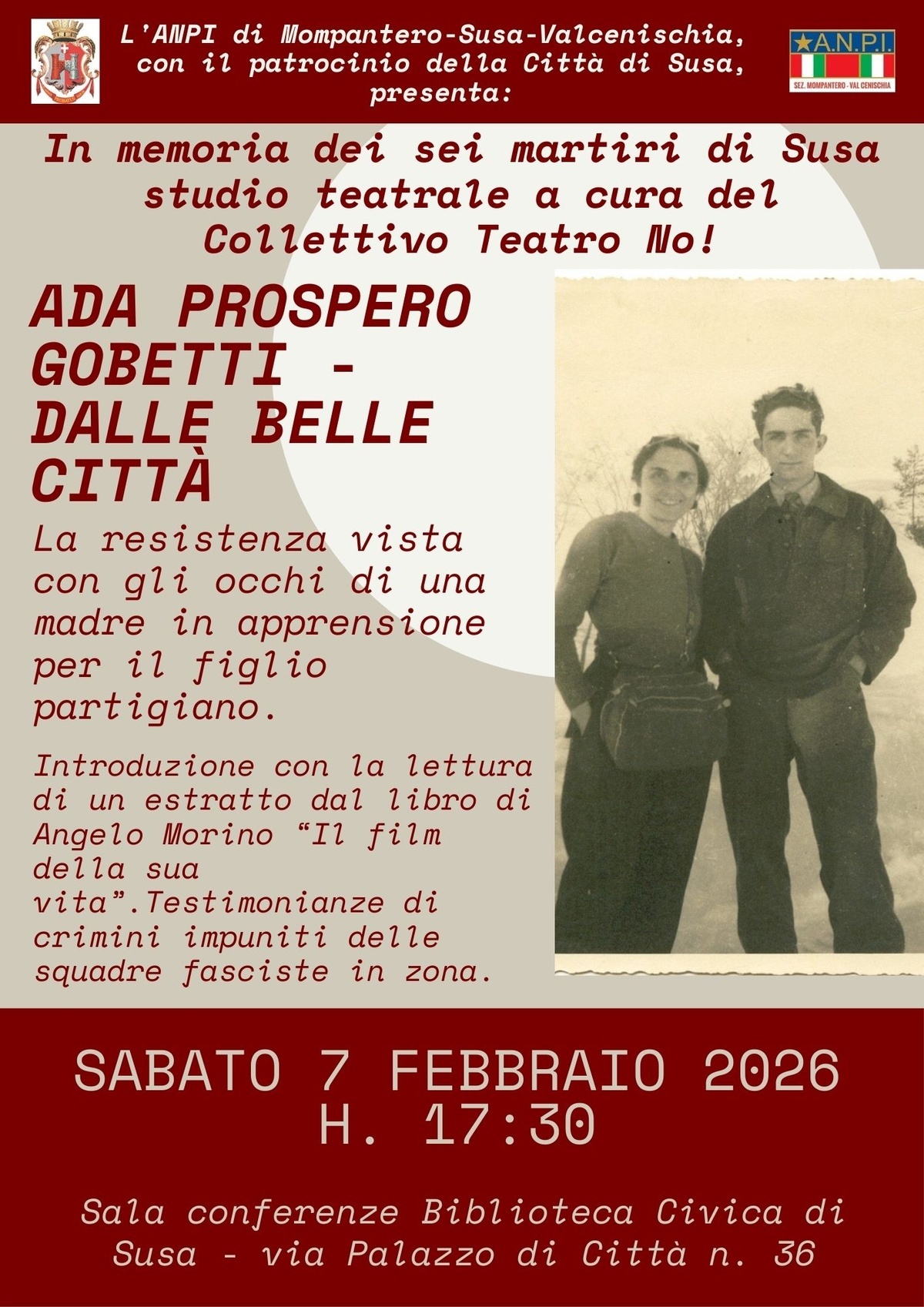 Una serata dedicata ai SEI MARTIRI di Susa - Ada Prospero Gobetti . Dalle belle città(La Resistenza vista dagli occhi di una madrein apprensione per il figlio partigiano)