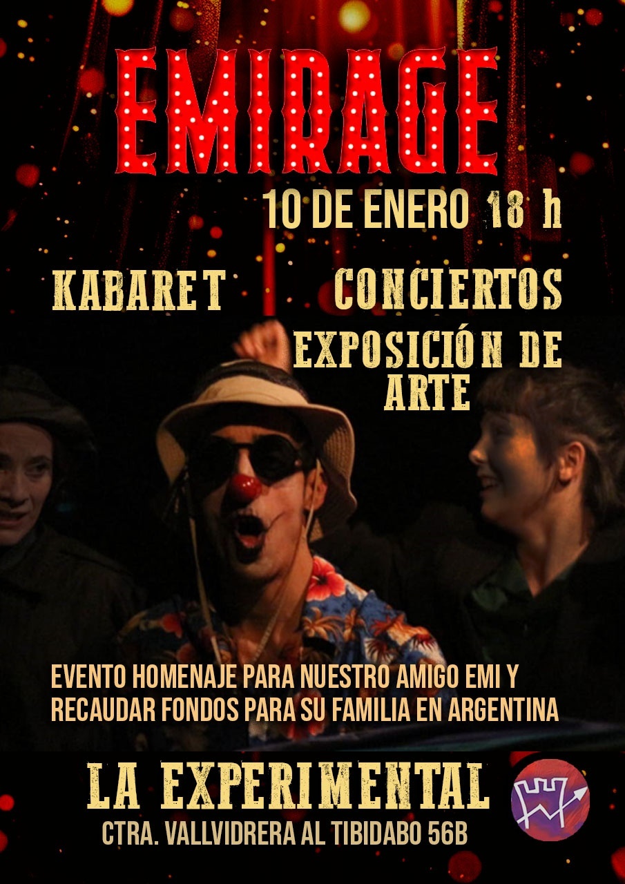 En principios de este 2025 pasamos por uno de los momentos más duros de esta casa, perdimos a nuestro compañero y hermano Emi. Dejando un gran vacio en la comunidad Experimental, Kalavia y Casa Rosa, así como en todes los que lo conocieron y lo quisieron. Como a un año de procesar está desgarradora ausencia, elegimos hacer este evento no para llorar sino para celebrar como sabemos hacer y como él sabia hacer, a traves del 🎨ARTE con una EXPOSICIÓN a partir de las 18 hs. 🎭KABARET 19 hs y 🎸🎼CONCIERTOS a partir de las 20 hs. HABRÁ BARRA Y COCINA. NO hay PARKING Y NO TRAIGAN PERROS. 📍La Experimental. Ctra de Vallvidrera al Tibidabo 56b.